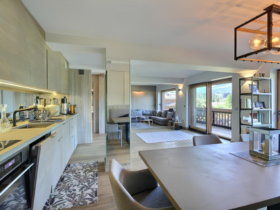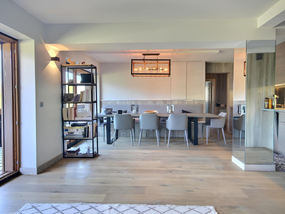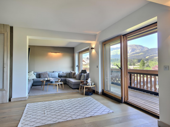 Nestled in an esteemed condominium on the Mont d'Arbois plateau, this meticulously renovated apartment offers an exquisite living experience. Enjoy breathtaking mountain views from its numerous windows, illuminating its spacious living room, TV lounge, dining area, and open-plan kitchen. Step onto the southwest-facing balcony to soak in the breathtaking mountain views.