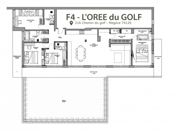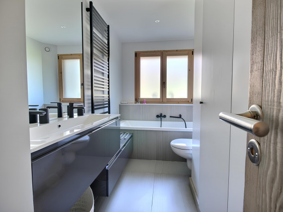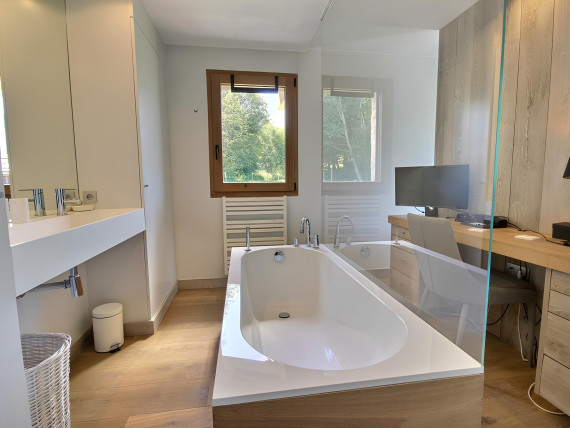 Perfect for families, the apartment features four bedrooms, four bathrooms, and two shower rooms, providing ample space for all. In winter, the ski slopes are just a stone's throw away, while in summer, hiking trails and a golf course beckon, inviting you to explore the picturesque surroundings.